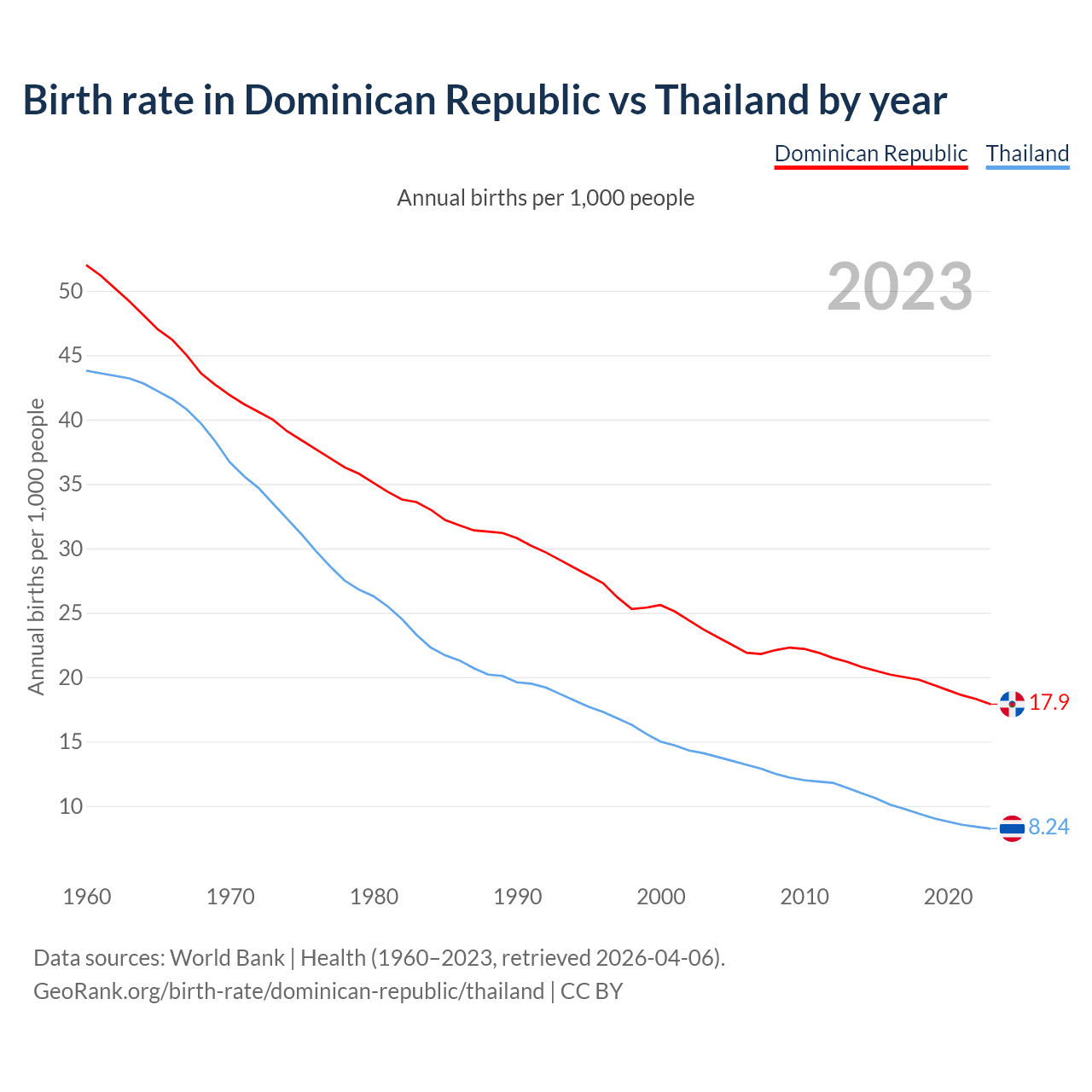 GeoRank.org/birth-rate/dominican-republic/thailand | CC BY