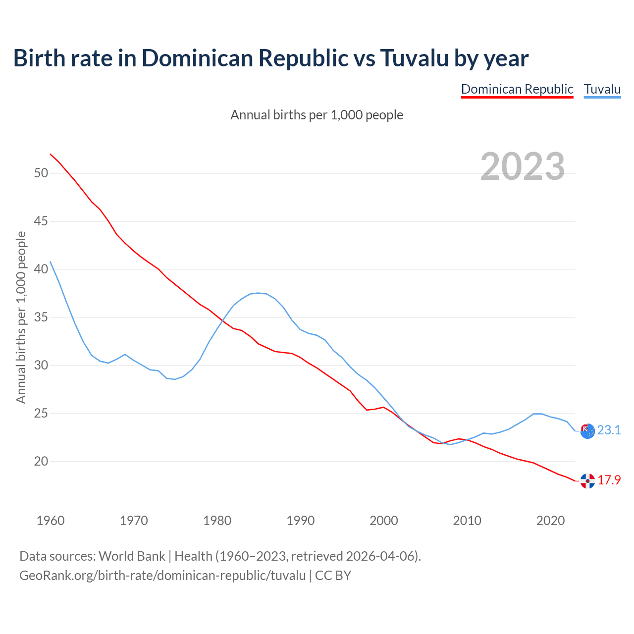 GeoRank.org/birth-rate/dominican-republic/tuvalu | CC BY