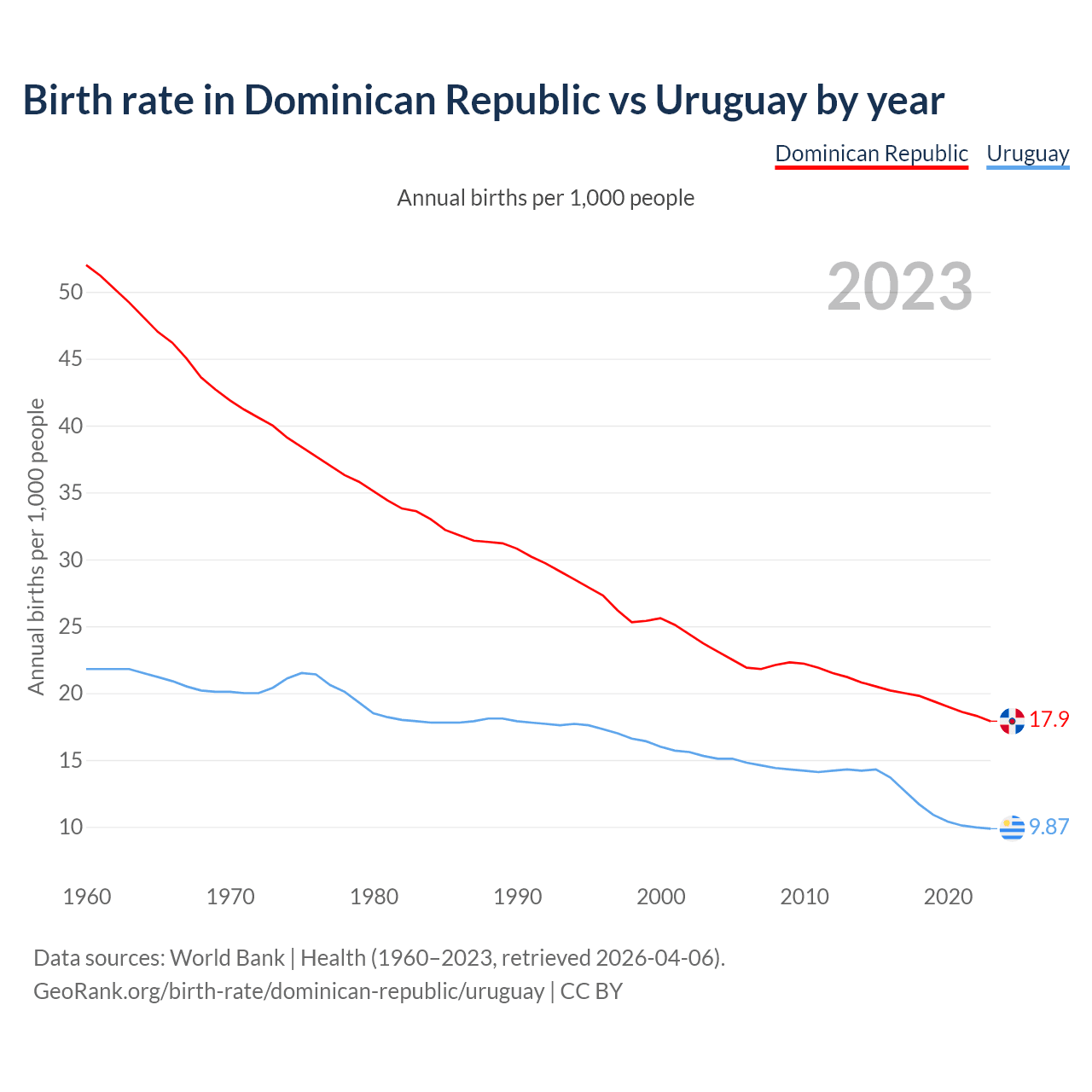 GeoRank.org/birth-rate/dominican-republic/uruguay | CC BY