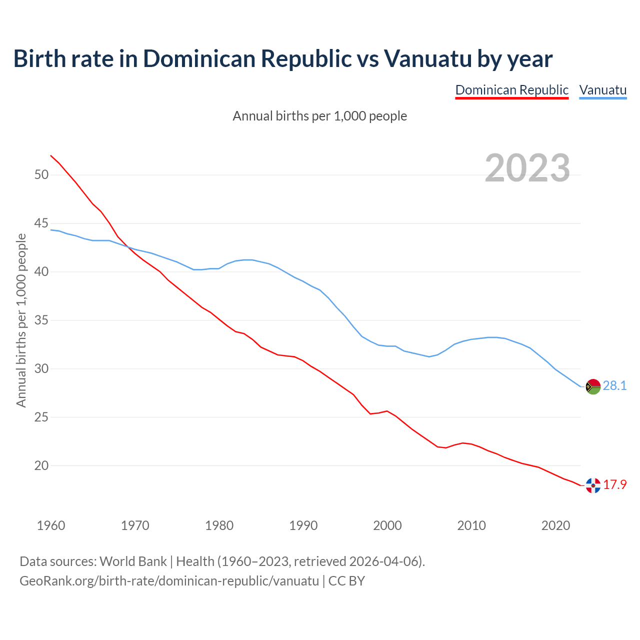 GeoRank.org/birth-rate/dominican-republic/vanuatu | CC BY