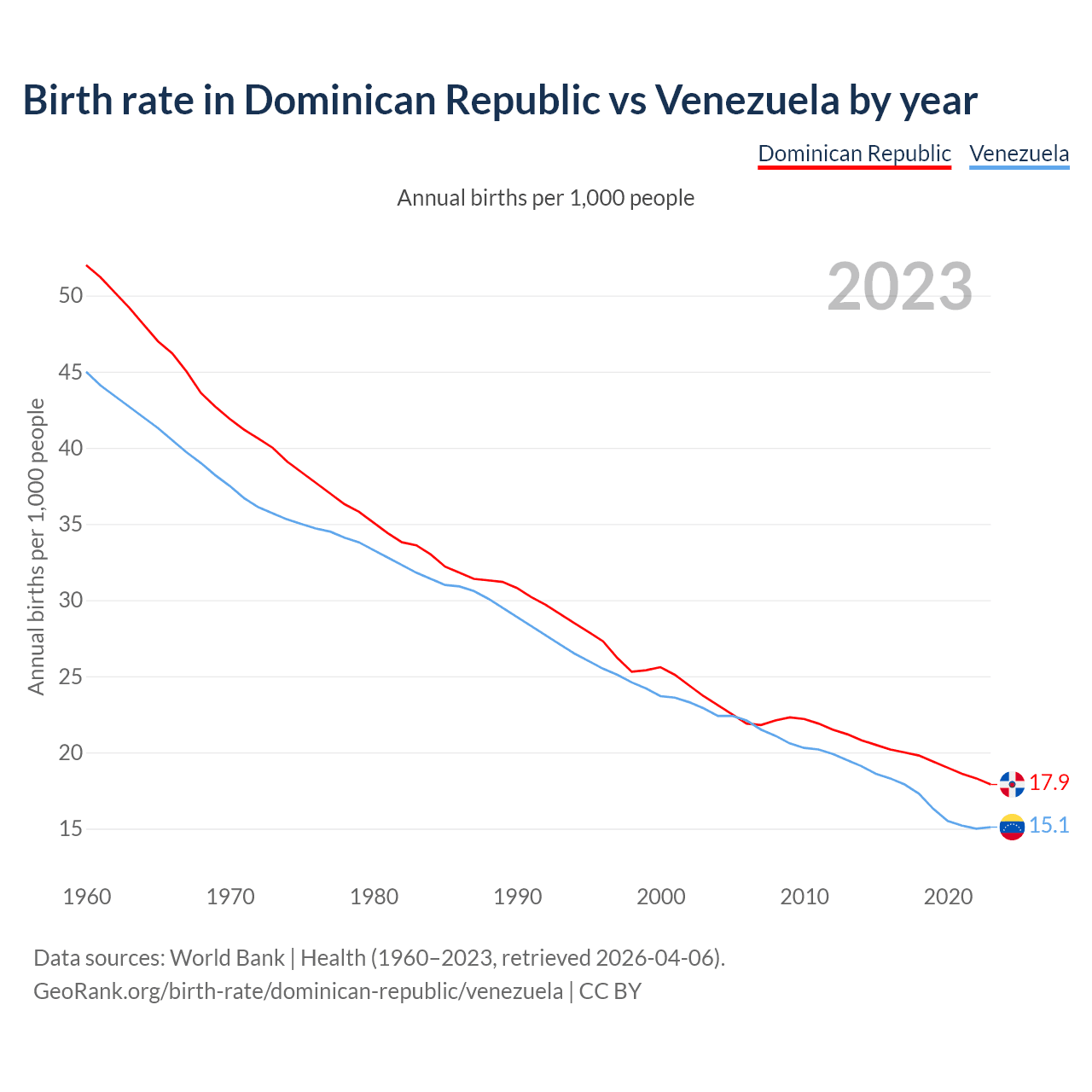 GeoRank.org/birth-rate/dominican-republic/venezuela | CC BY