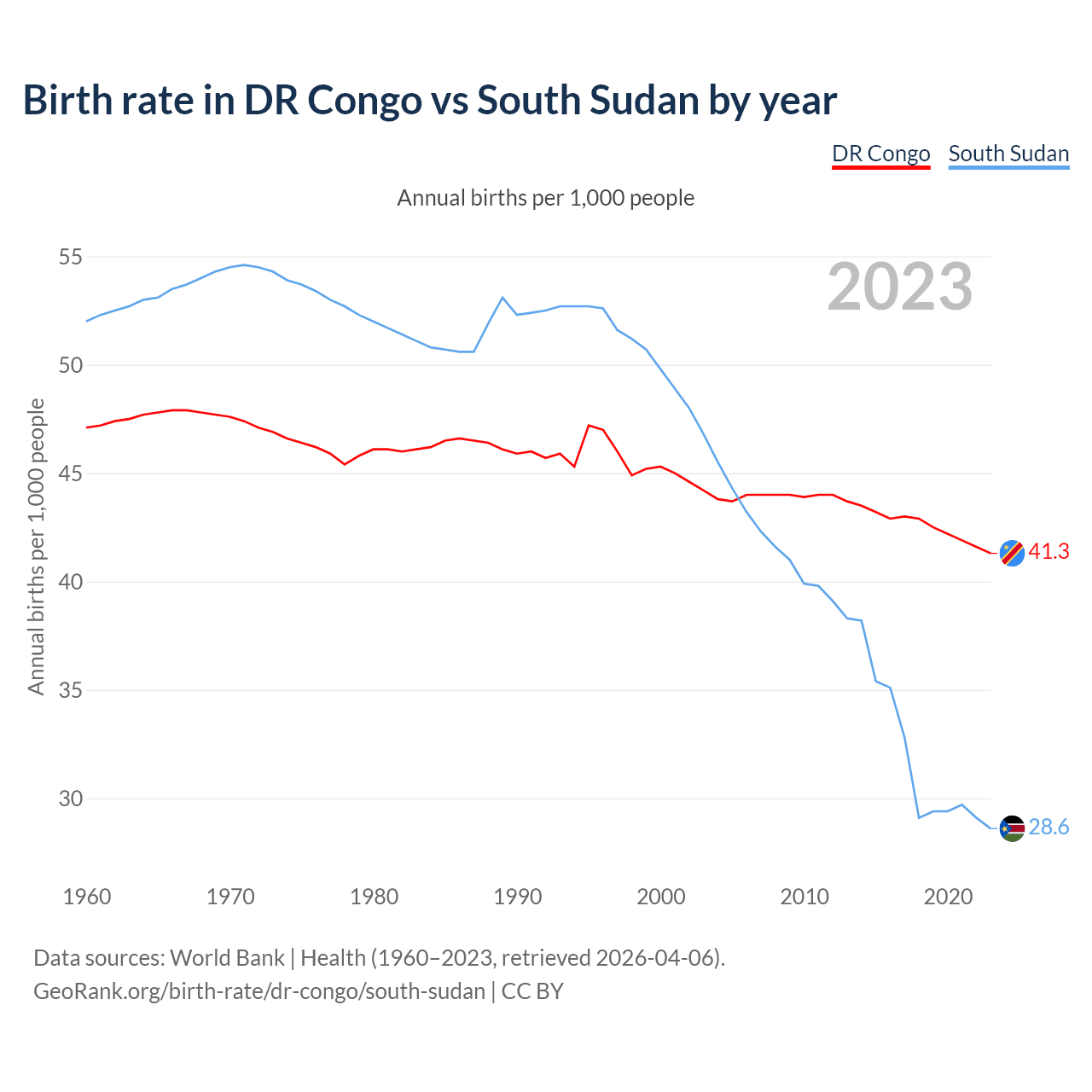 GeoRank.org/birth-rate/dr-congo/south-sudan | CC BY