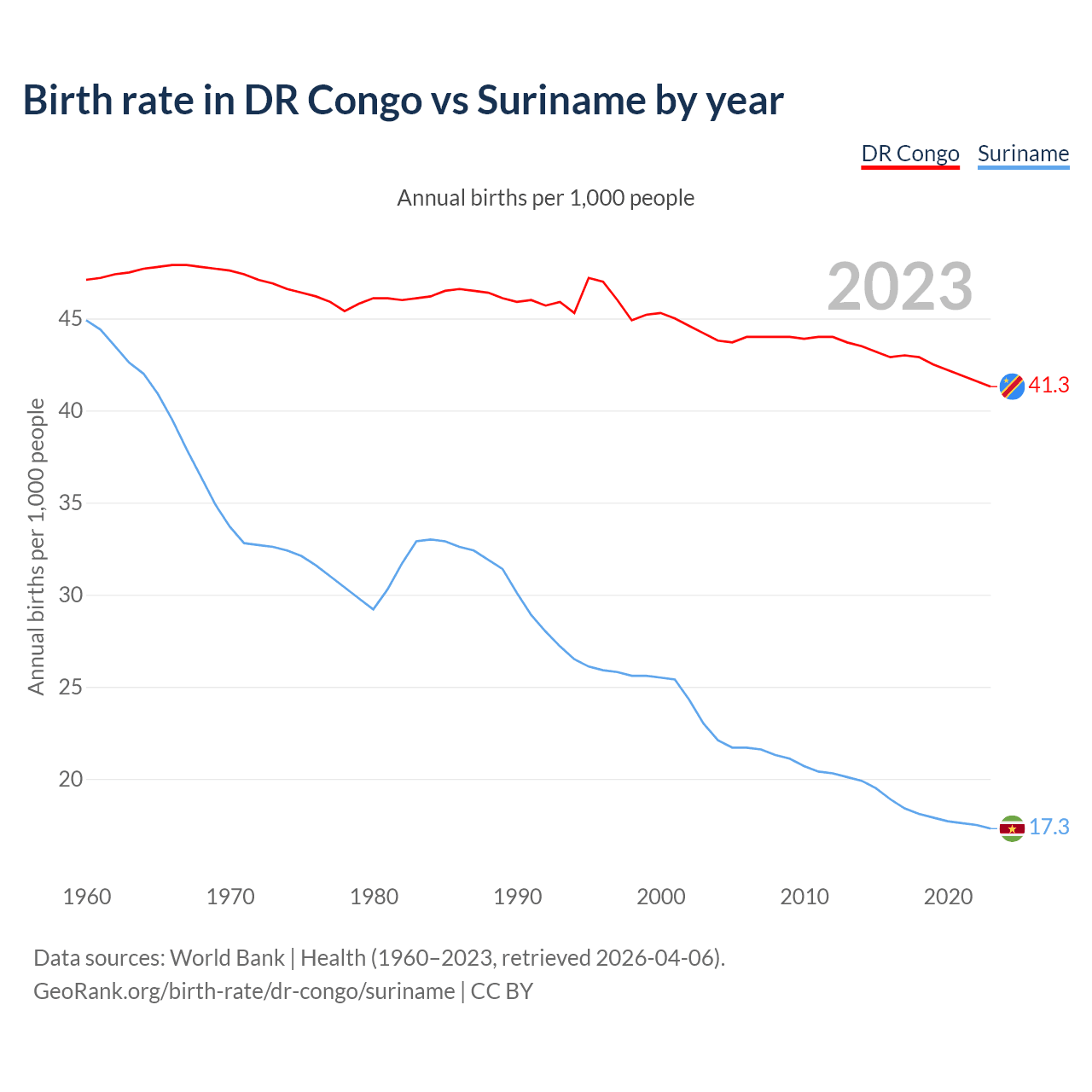 GeoRank.org/birth-rate/dr-congo/suriname | CC BY