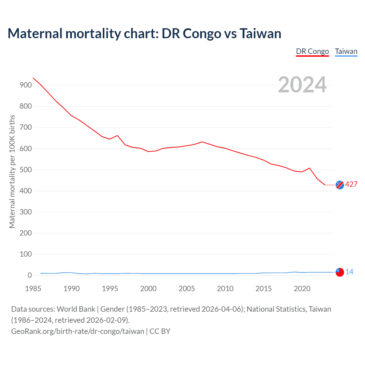 Maternal mortality chart: DR Congo vs Taiwan