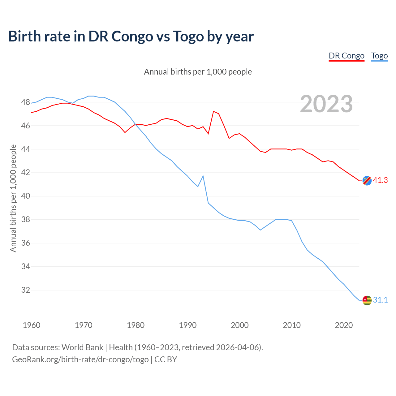 GeoRank.org/birth-rate/dr-congo/togo | CC BY