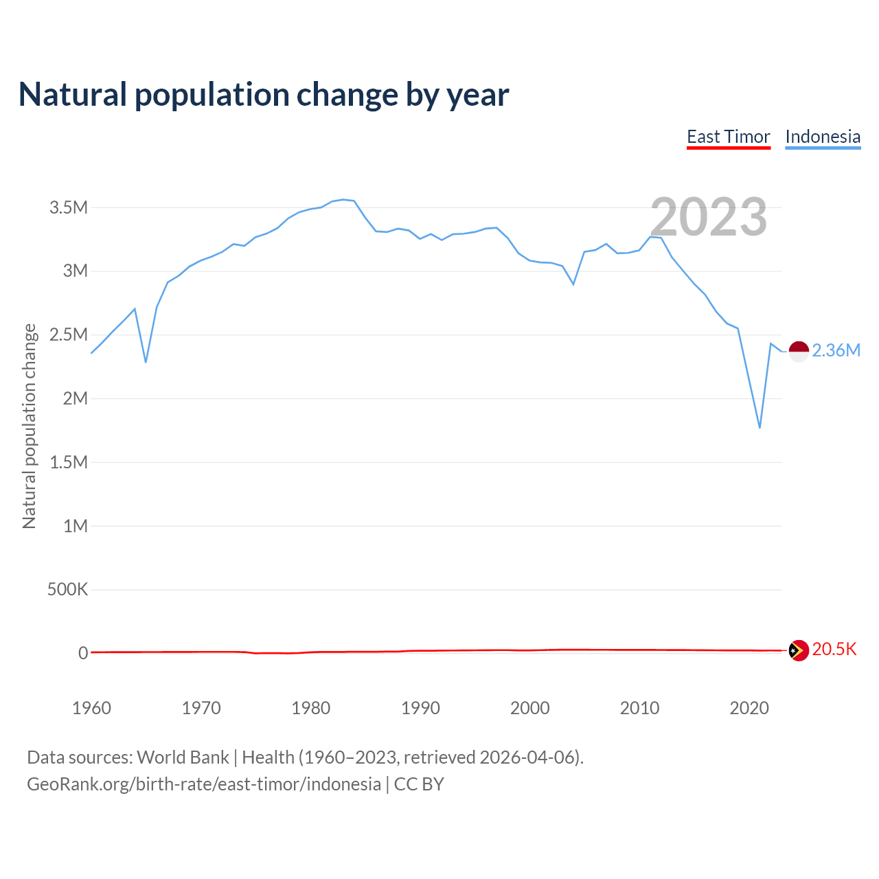 Check East Timor vs Indonesia population clock for a dynamic visualization of the changing population.
