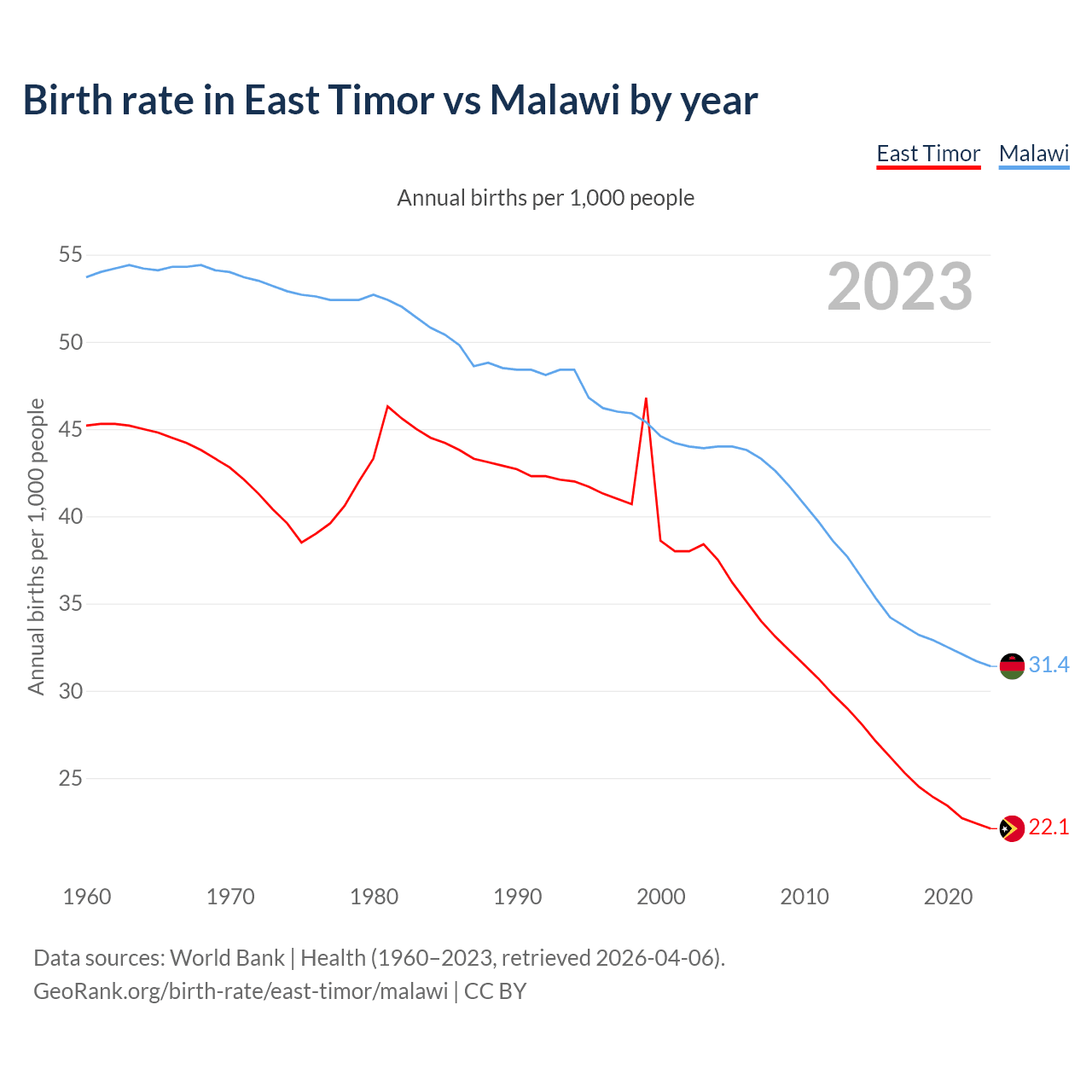 GeoRank.org/birth-rate/east-timor/malawi | CC BY