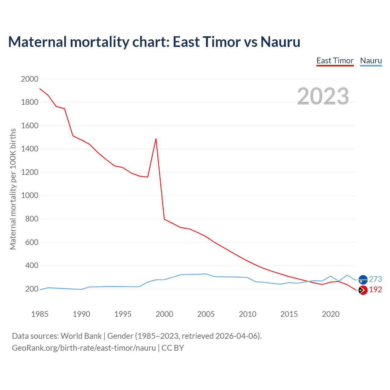 Maternal mortality chart: East Timor vs Nauru