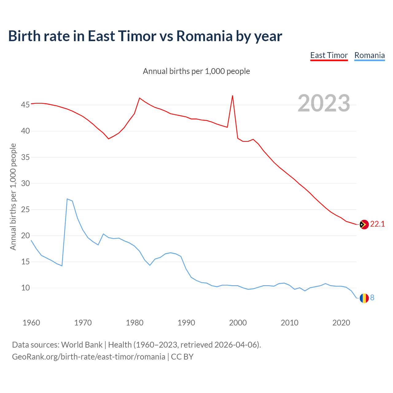 GeoRank.org/birth-rate/east-timor/romania | CC BY