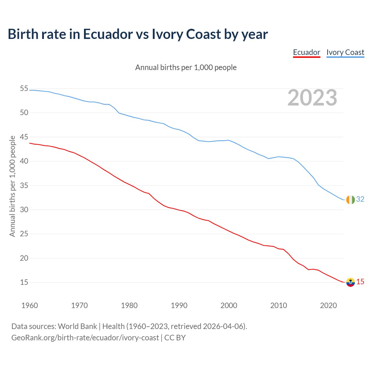 GeoRank.org/birth-rate/ecuador/ivory-coast | CC BY