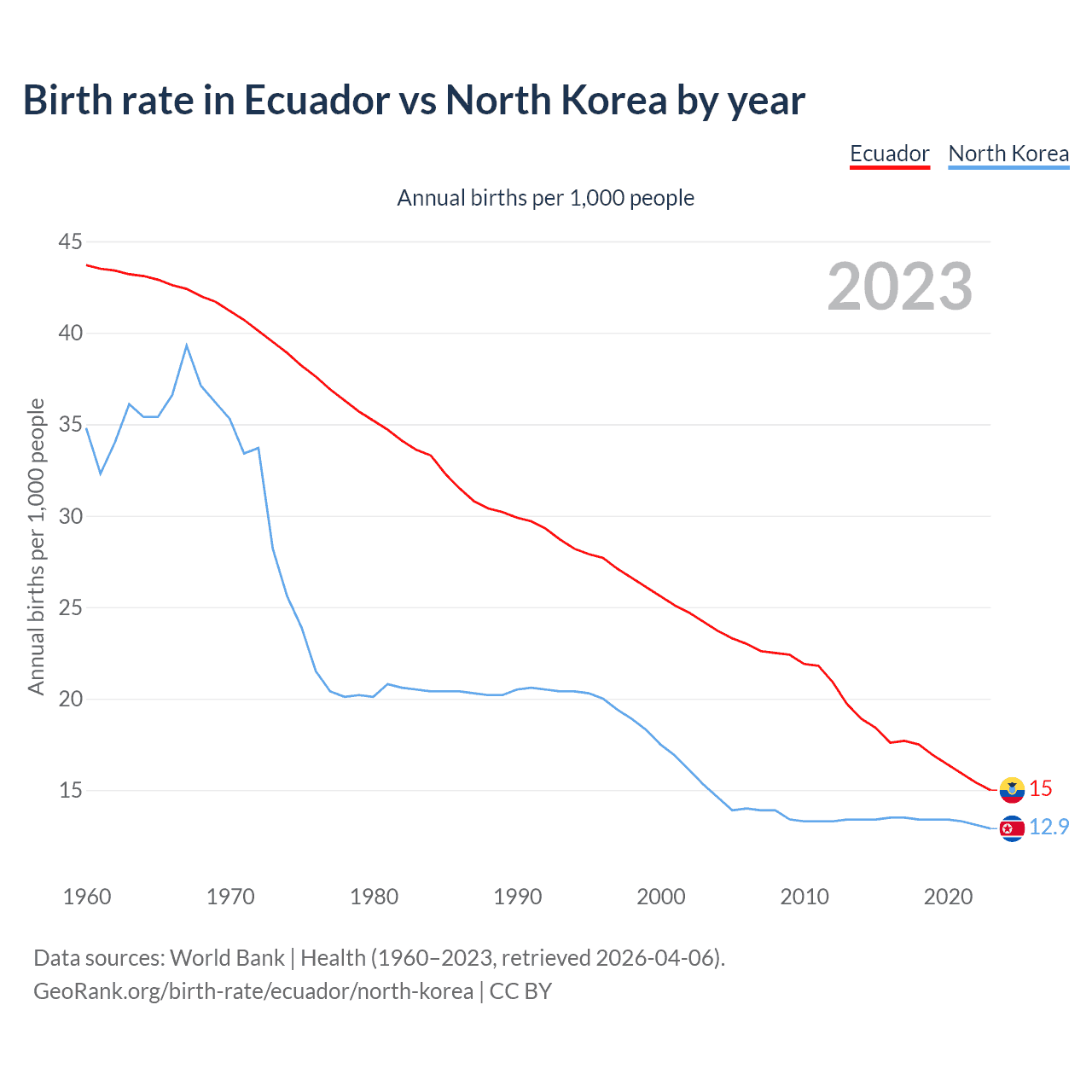 GeoRank.org/birth-rate/ecuador/north-korea | CC BY