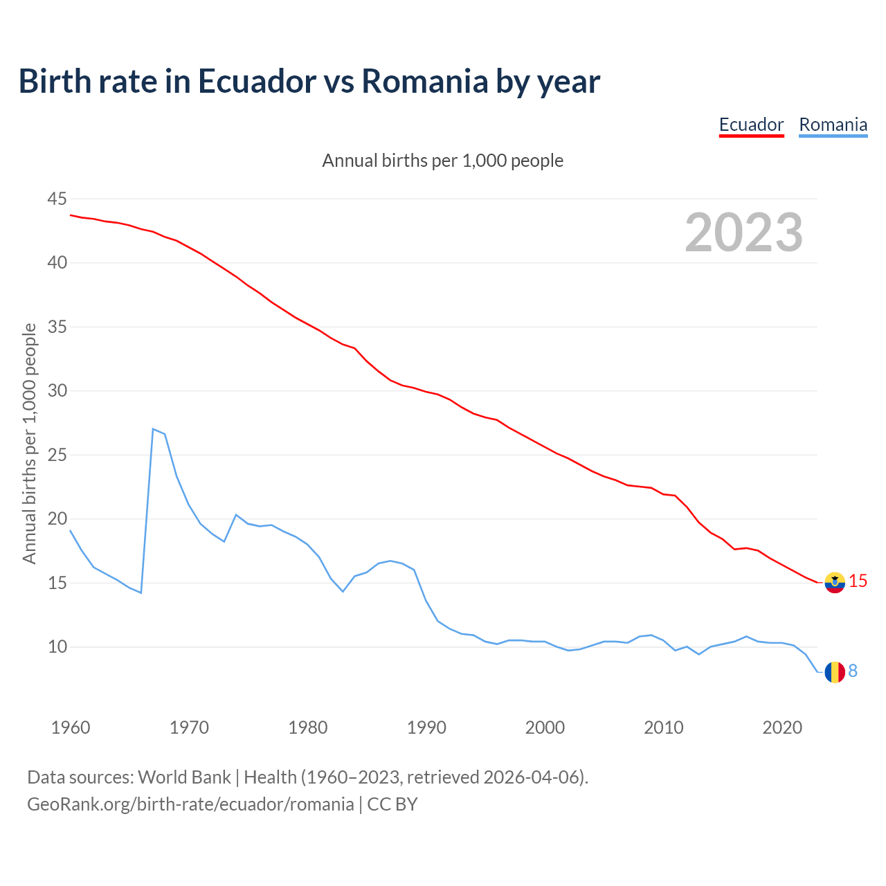 GeoRank.org/birth-rate/ecuador/romania | CC BY