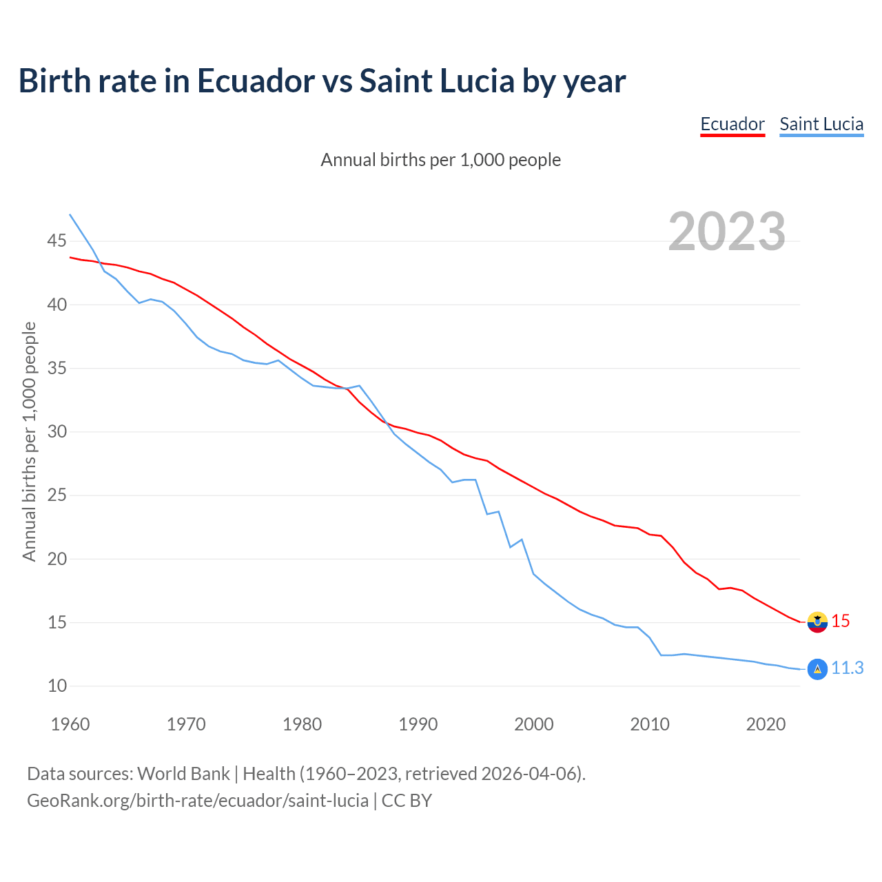 GeoRank.org/birth-rate/ecuador/saint-lucia | CC BY