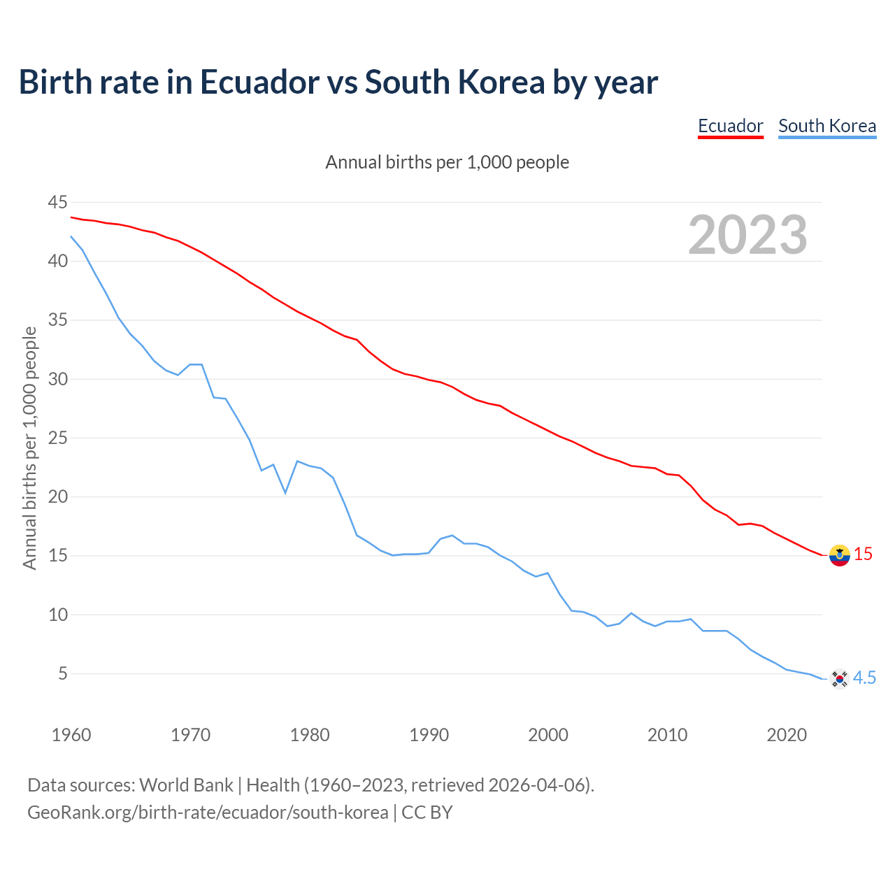 GeoRank.org/birth-rate/ecuador/south-korea | CC BY
