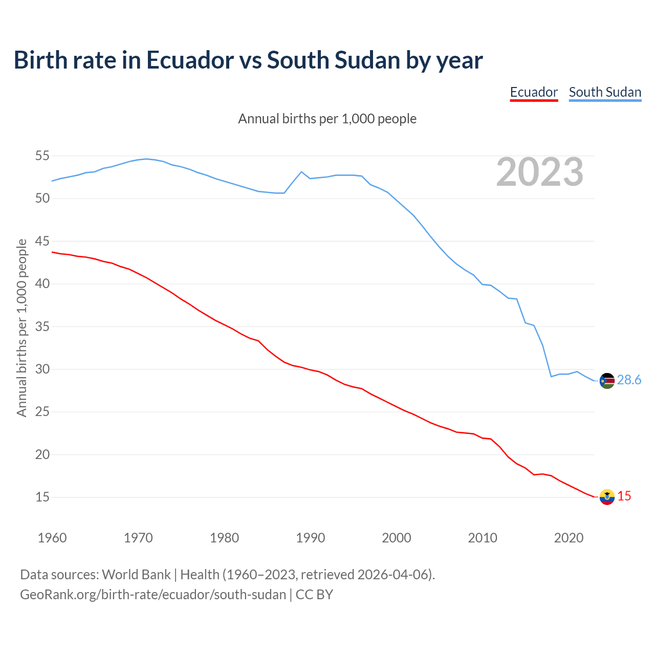 GeoRank.org/birth-rate/ecuador/south-sudan | CC BY