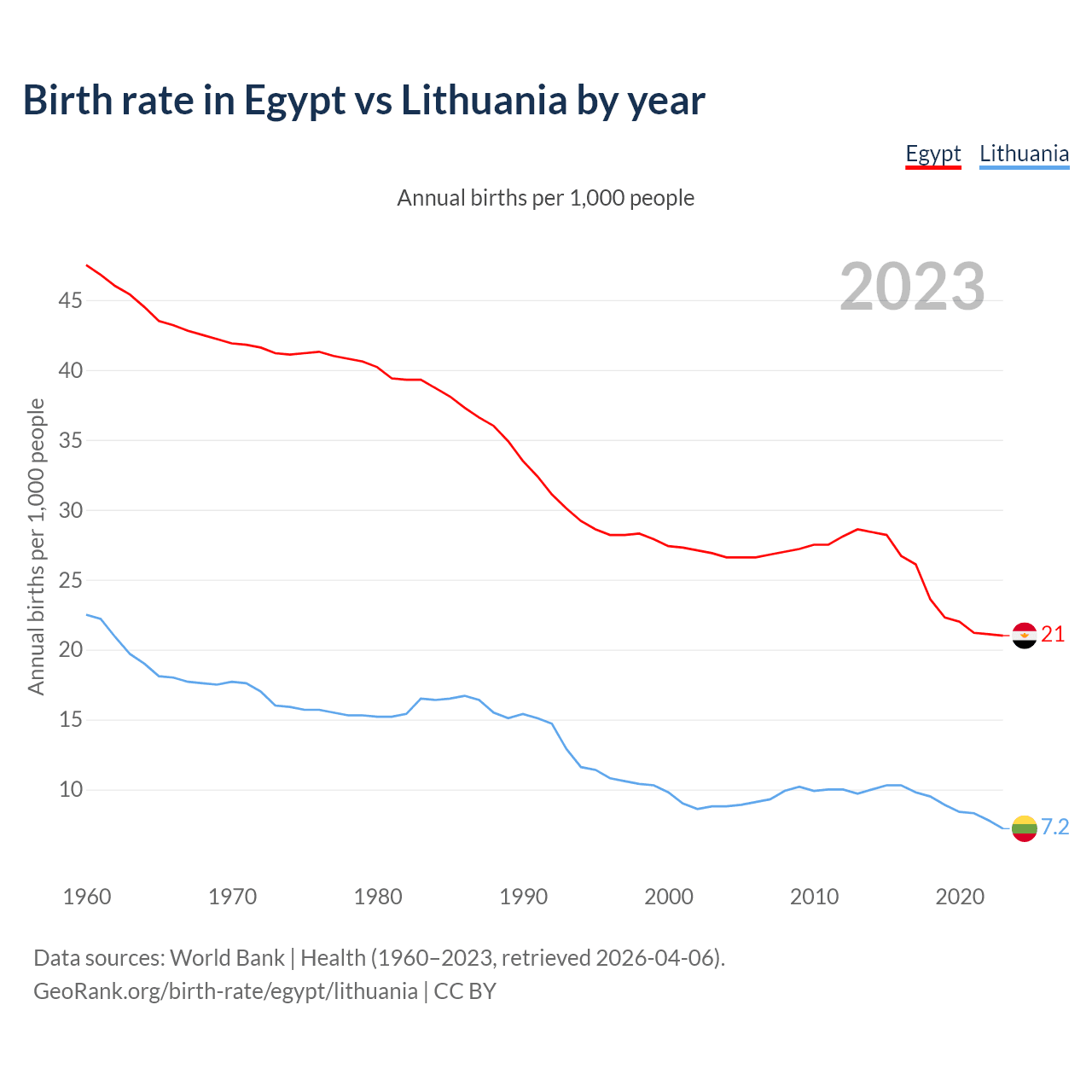 GeoRank.org/birth-rate/egypt/lithuania | CC BY