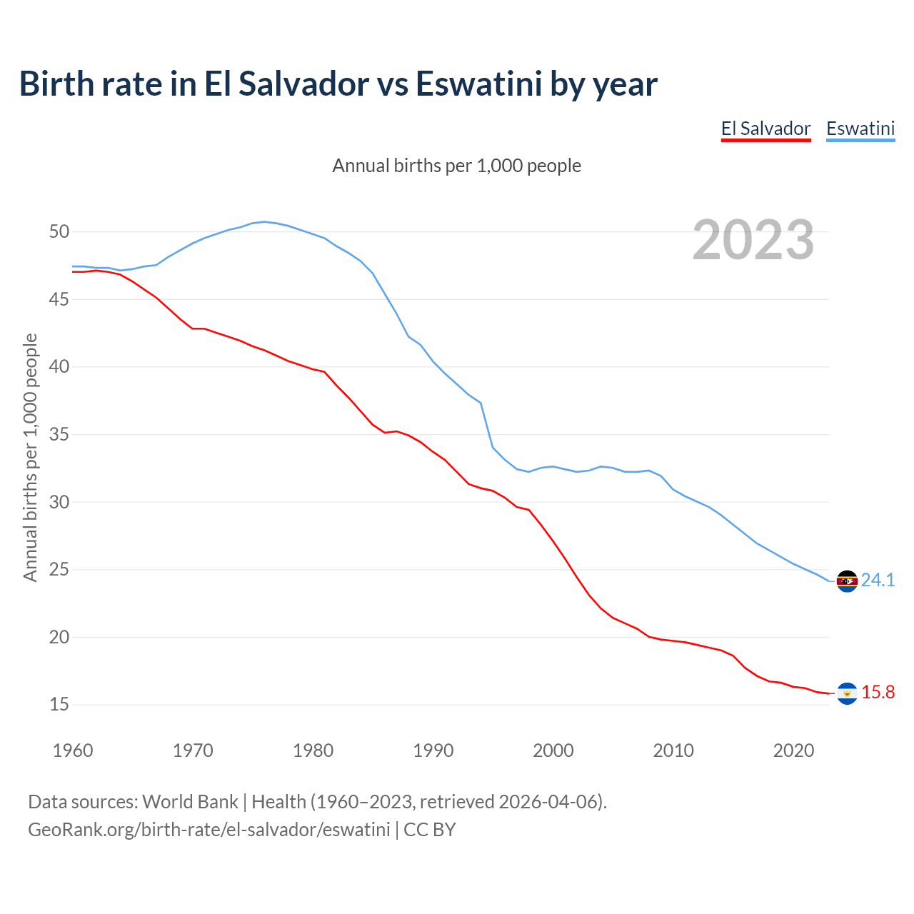 GeoRank.org/birth-rate/el-salvador/eswatini | CC BY