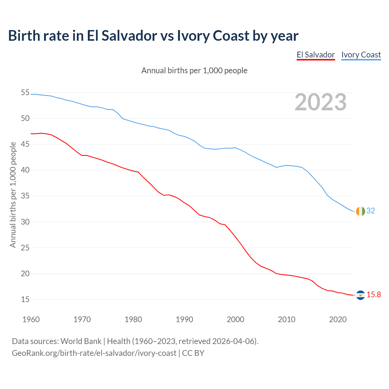 GeoRank.org/birth-rate/el-salvador/ivory-coast | CC BY