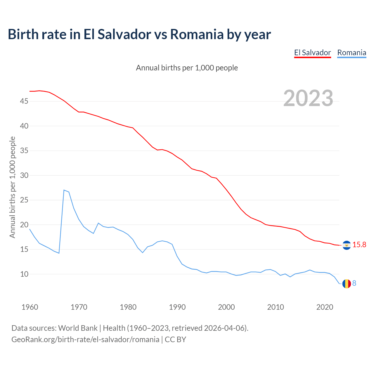 GeoRank.org/birth-rate/el-salvador/romania | CC BY