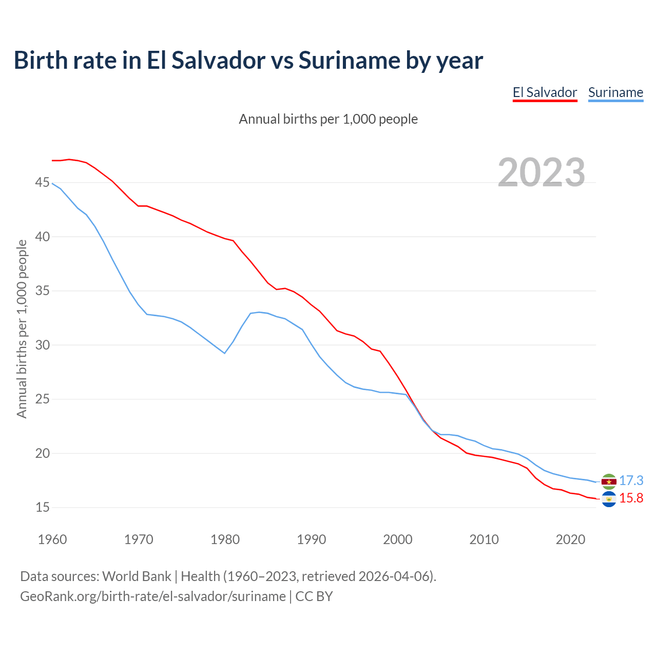 GeoRank.org/birth-rate/el-salvador/suriname | CC BY