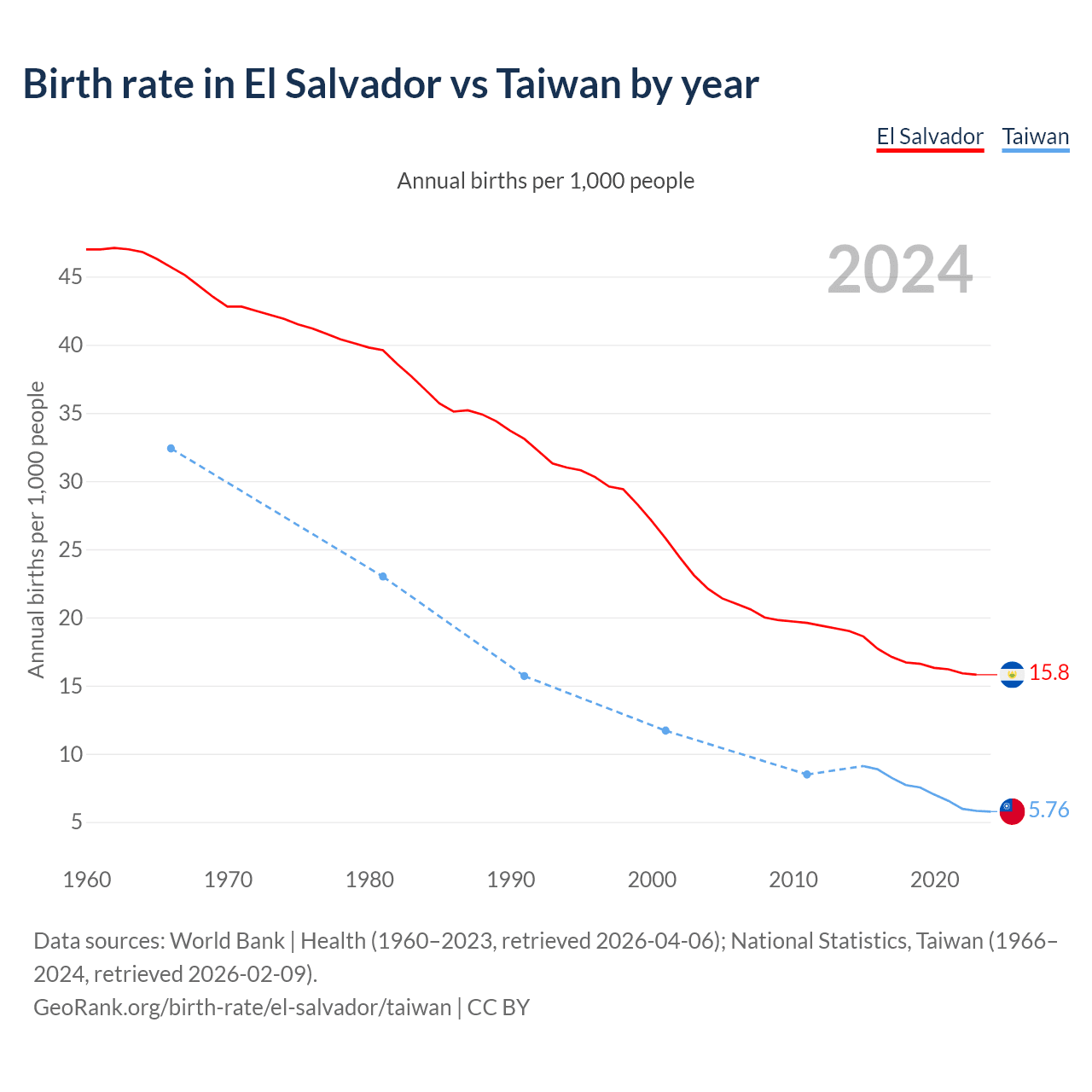 GeoRank.org/birth-rate/el-salvador/taiwan | CC BY
