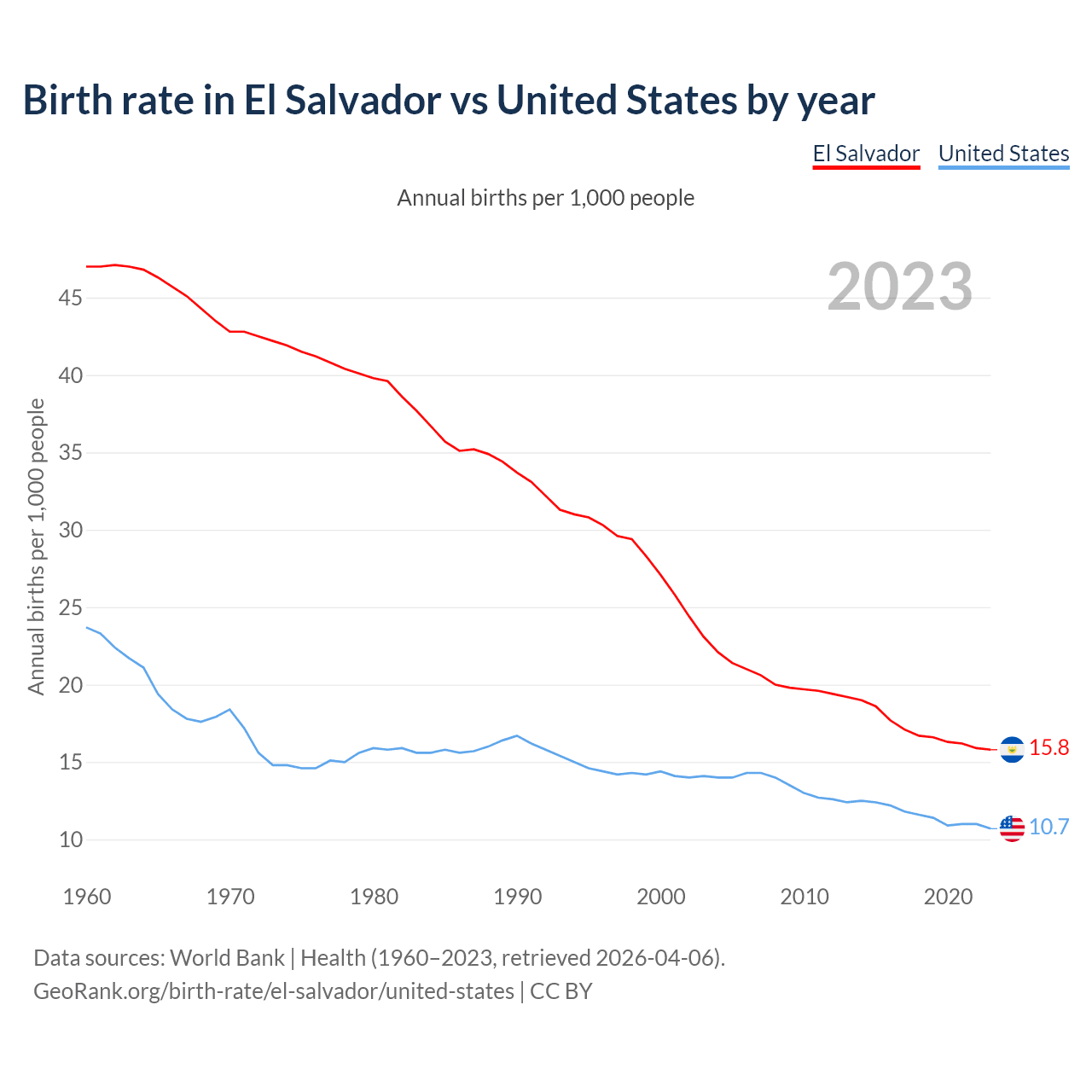 GeoRank.org/birth-rate/el-salvador/united-states | CC BY