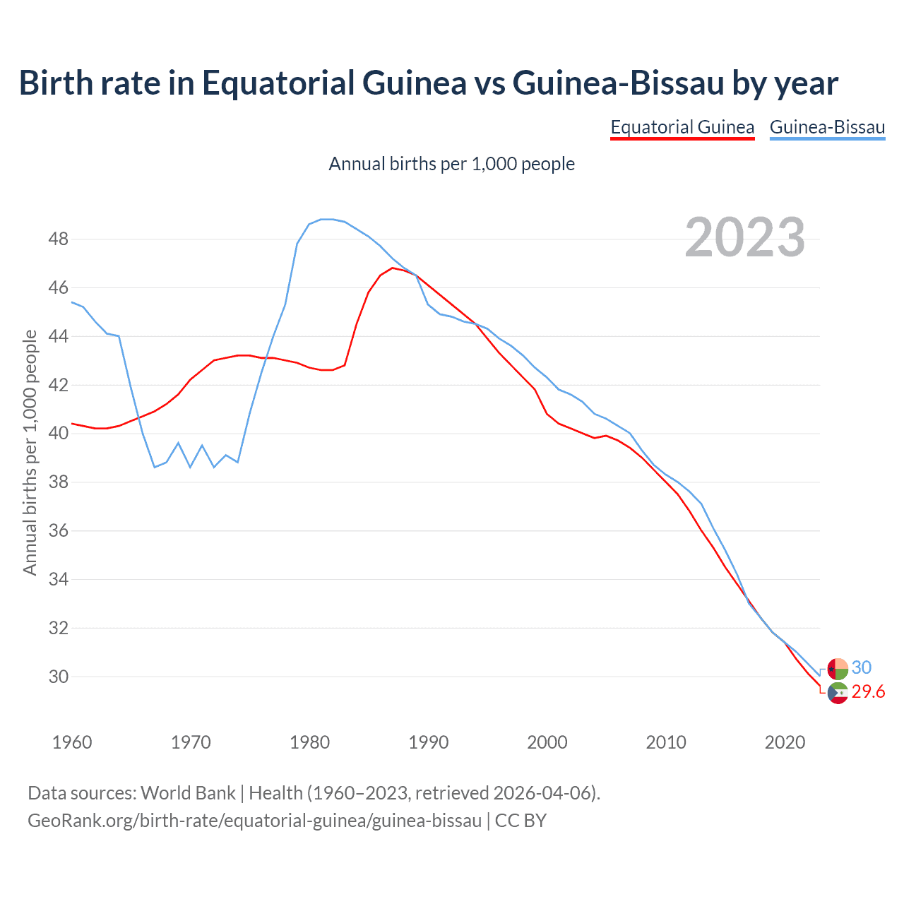 GeoRank.org/birth-rate/equatorial-guinea/guinea-bissau | CC BY