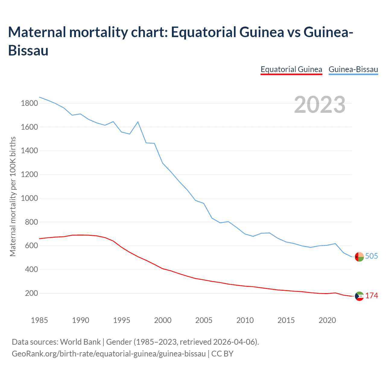 Maternal mortality chart: Equatorial Guinea vs Guinea-Bissau