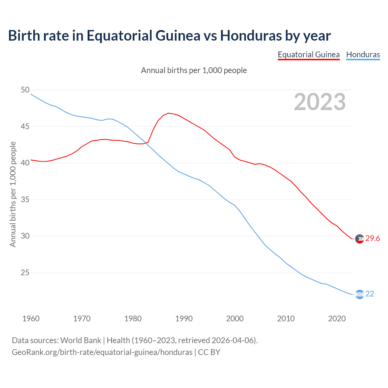 GeoRank.org/birth-rate/equatorial-guinea/honduras | CC BY