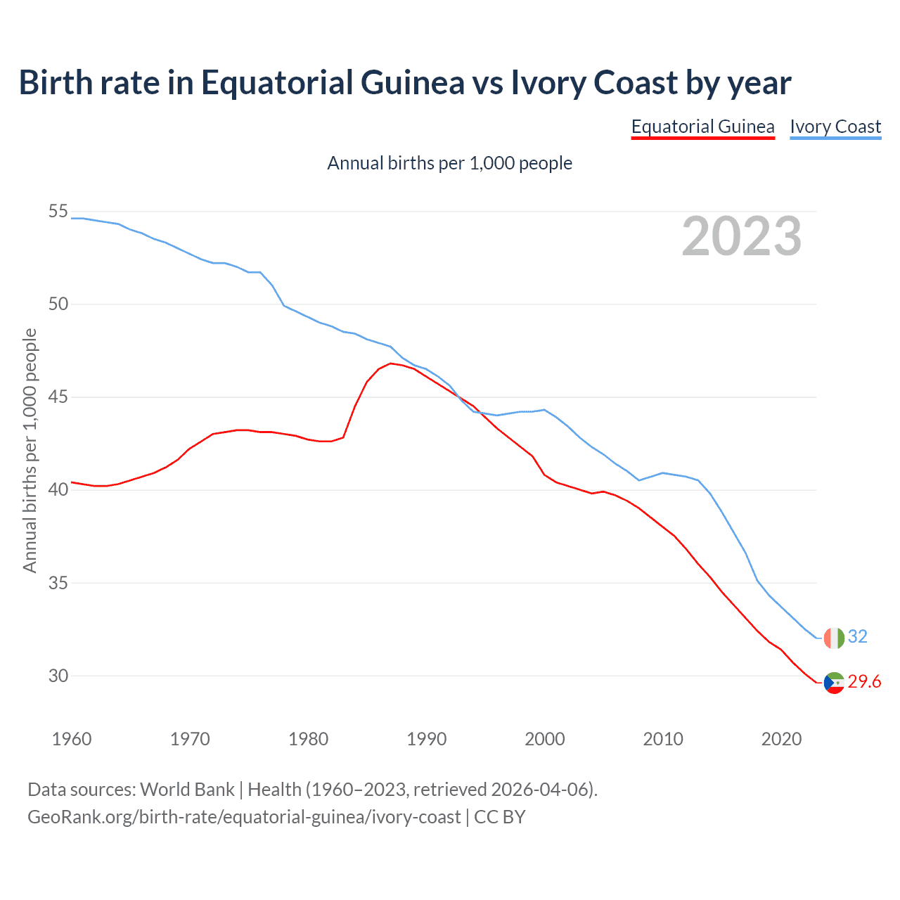 GeoRank.org/birth-rate/equatorial-guinea/ivory-coast | CC BY