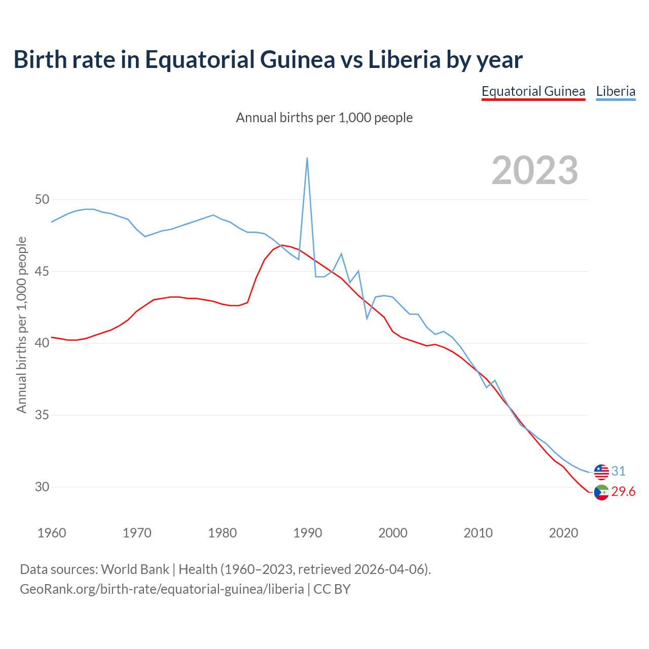 GeoRank.org/birth-rate/equatorial-guinea/liberia | CC BY
