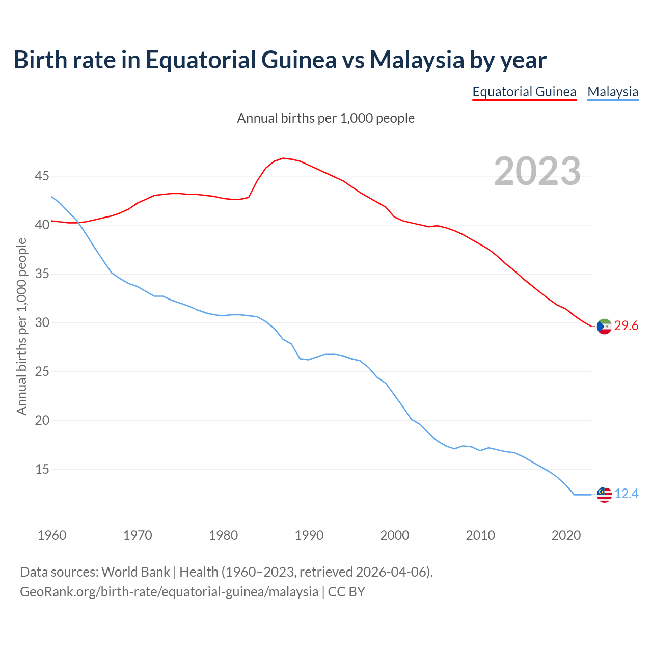 GeoRank.org/birth-rate/equatorial-guinea/malaysia | CC BY