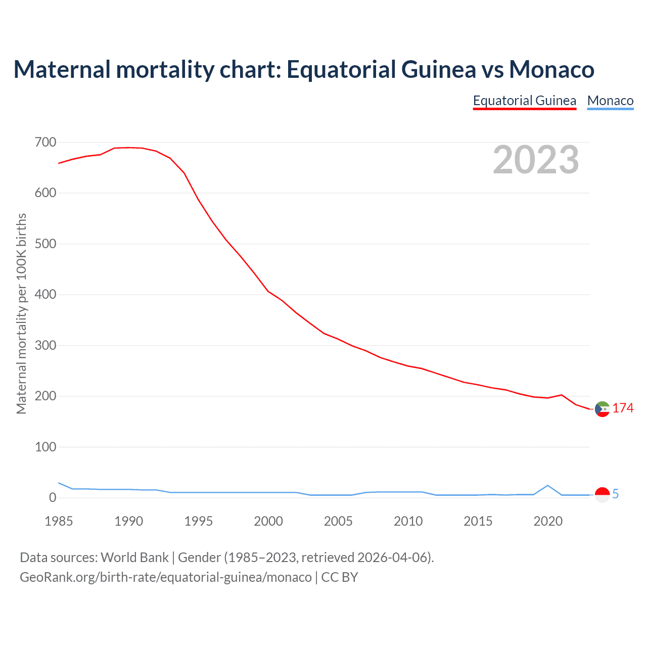 Maternal mortality chart: Equatorial Guinea vs Monaco