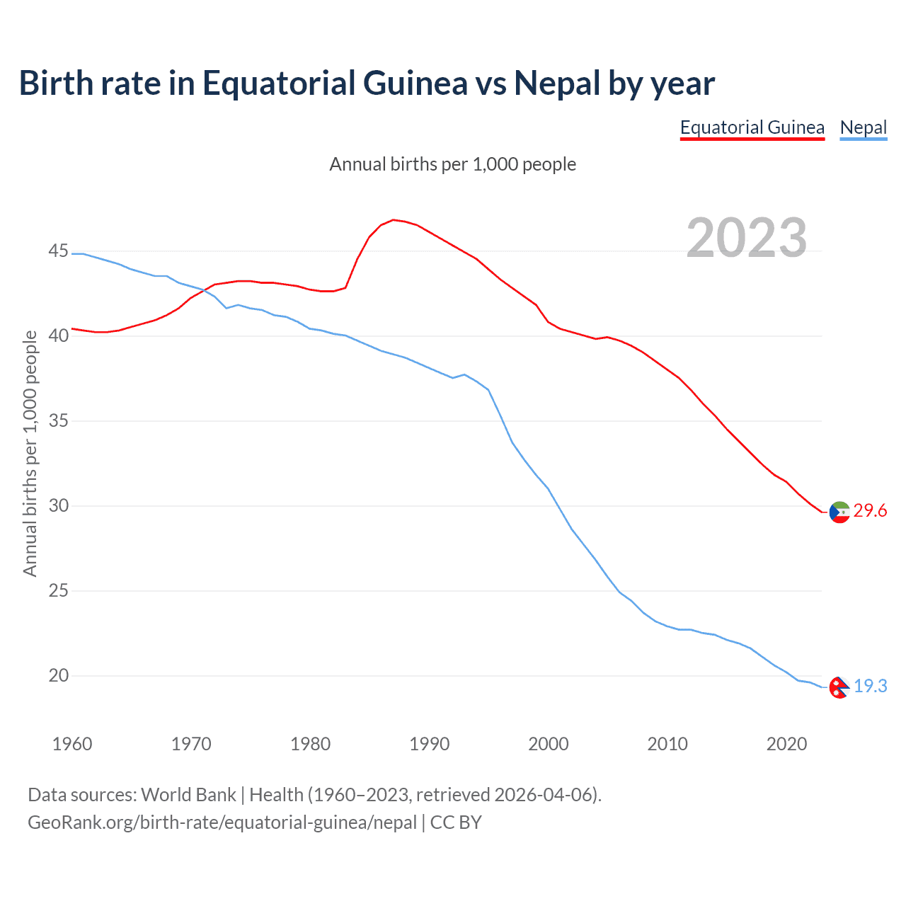 GeoRank.org/birth-rate/equatorial-guinea/nepal | CC BY