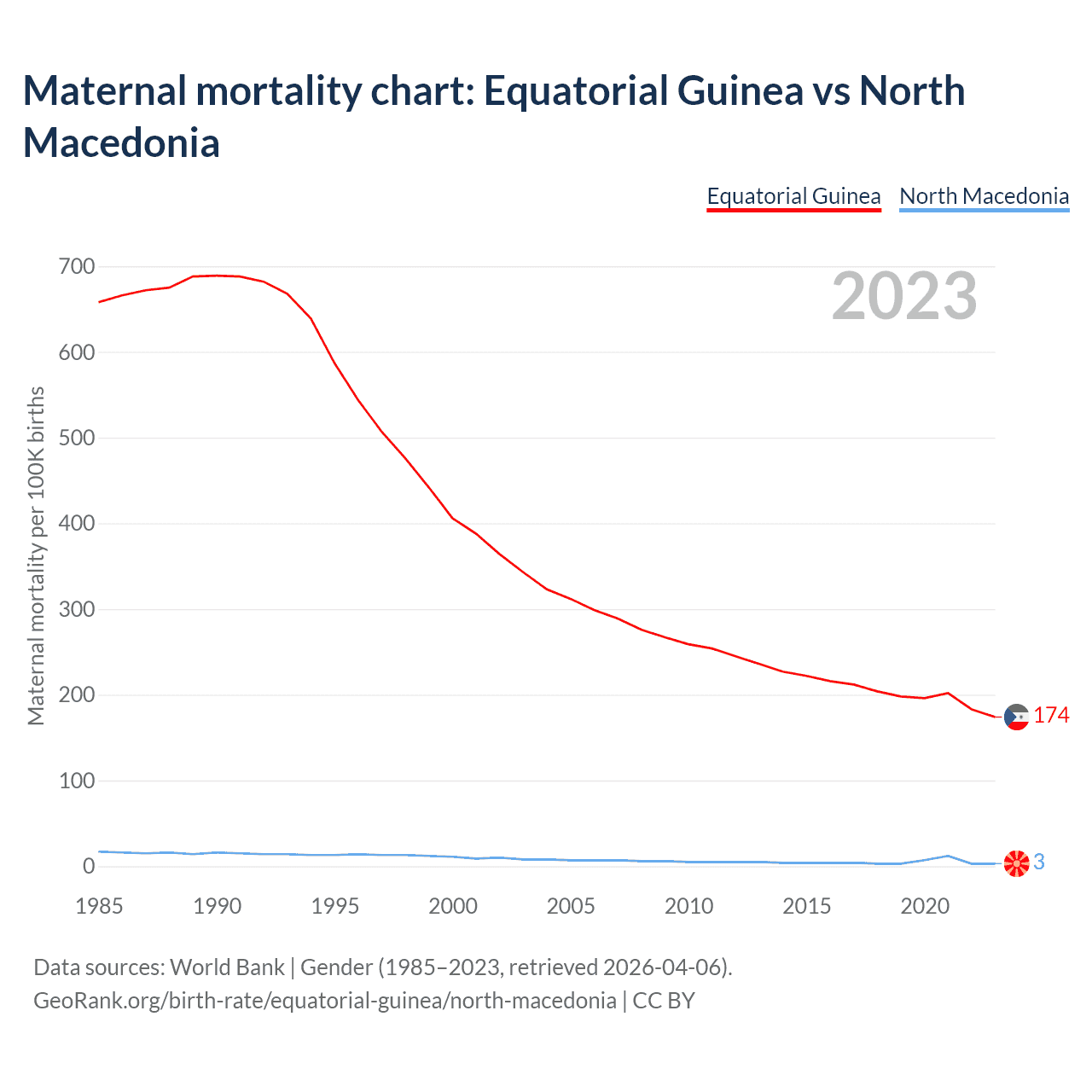Maternal mortality chart: Equatorial Guinea vs North Macedonia