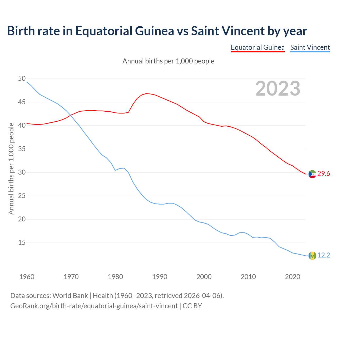 GeoRank.org/birth-rate/equatorial-guinea/saint-vincent | CC BY