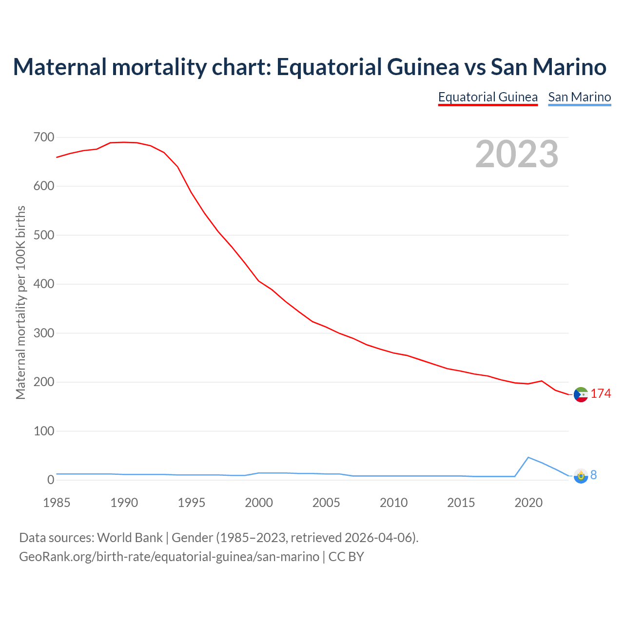 Maternal mortality chart: Equatorial Guinea vs San Marino