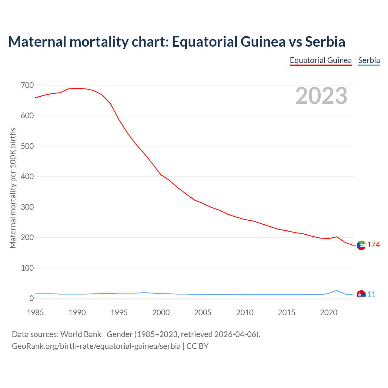 Maternal mortality chart: Equatorial Guinea vs Serbia