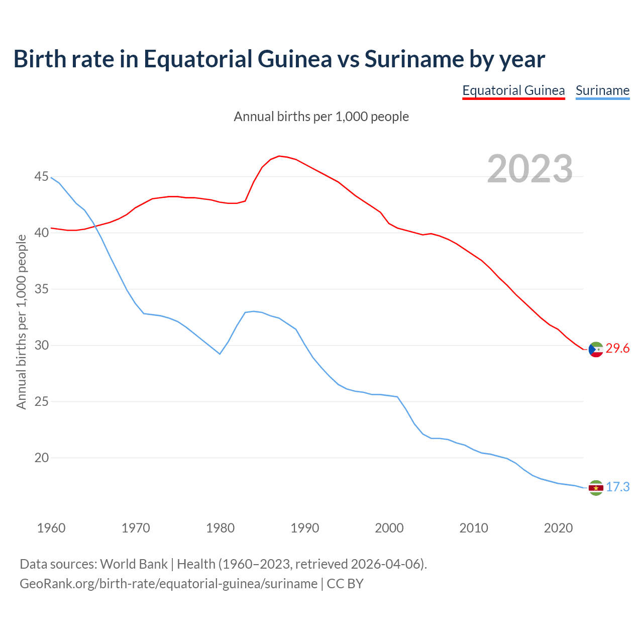 GeoRank.org/birth-rate/equatorial-guinea/suriname | CC BY
