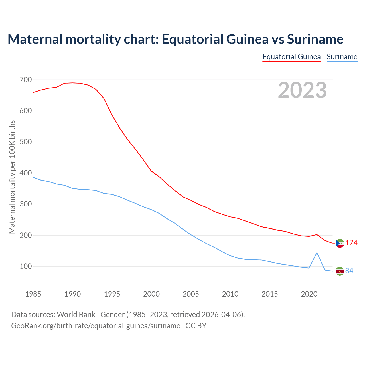 Maternal mortality chart: Equatorial Guinea vs Suriname