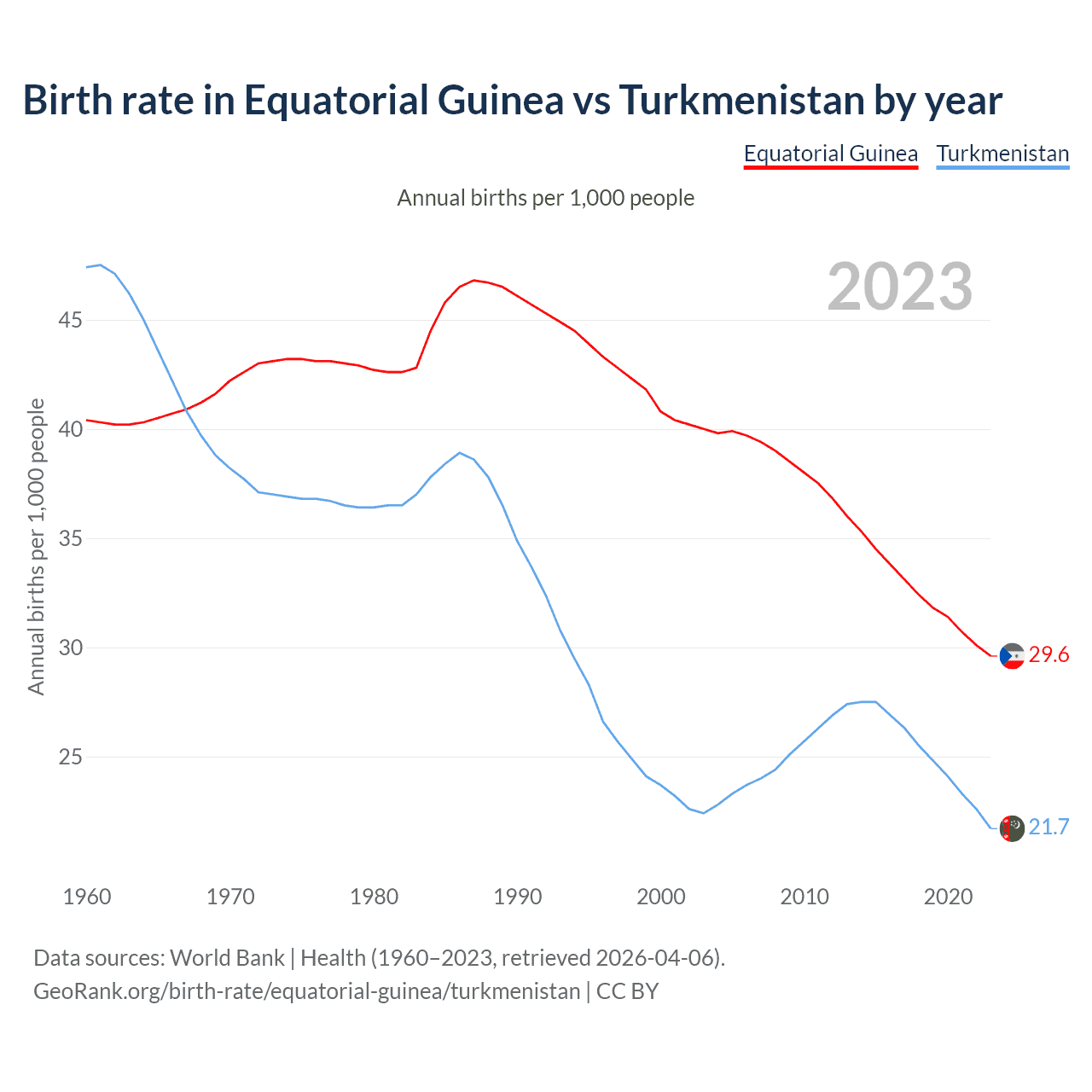 GeoRank.org/birth-rate/equatorial-guinea/turkmenistan | CC BY