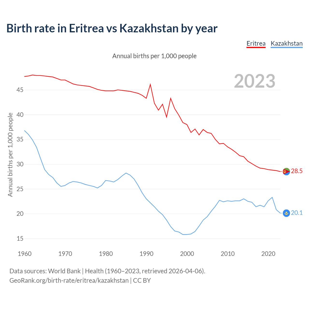 GeoRank.org/birth-rate/eritrea/kazakhstan | CC BY