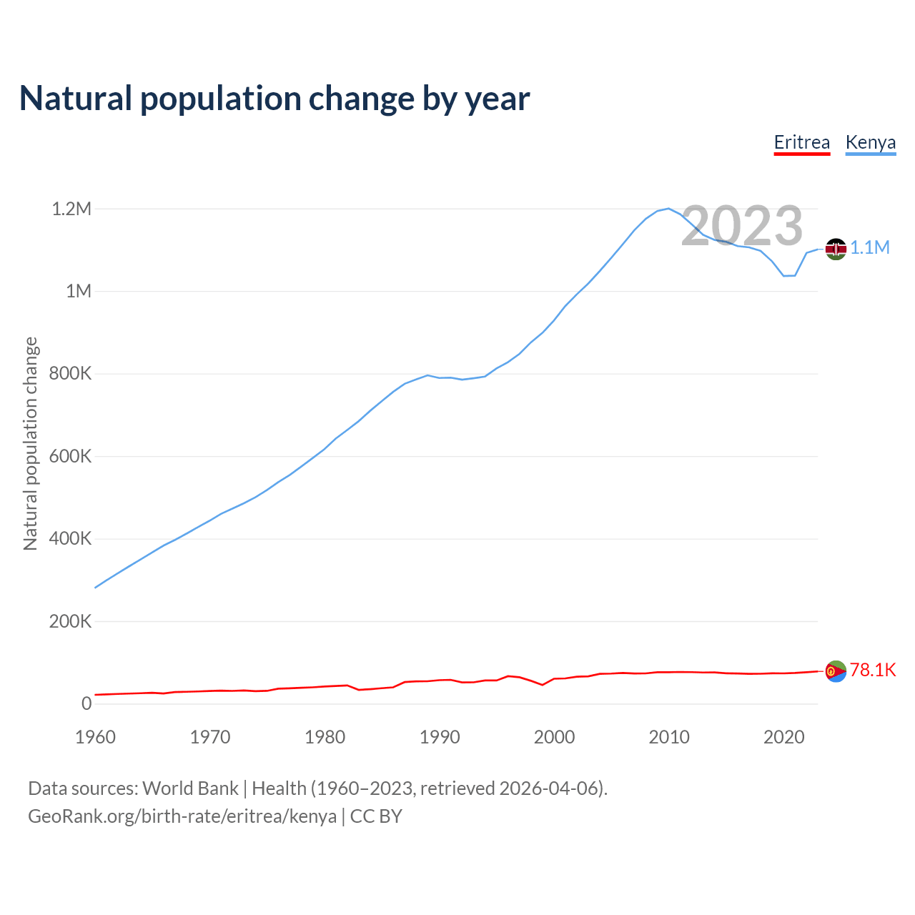 Check Eritrea vs Kenya population clock for a dynamic visualization of the changing population.