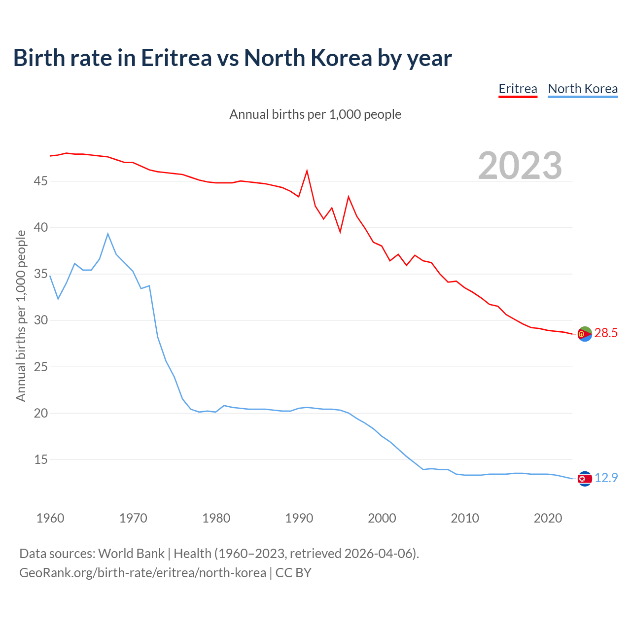 GeoRank.org/birth-rate/eritrea/north-korea | CC BY