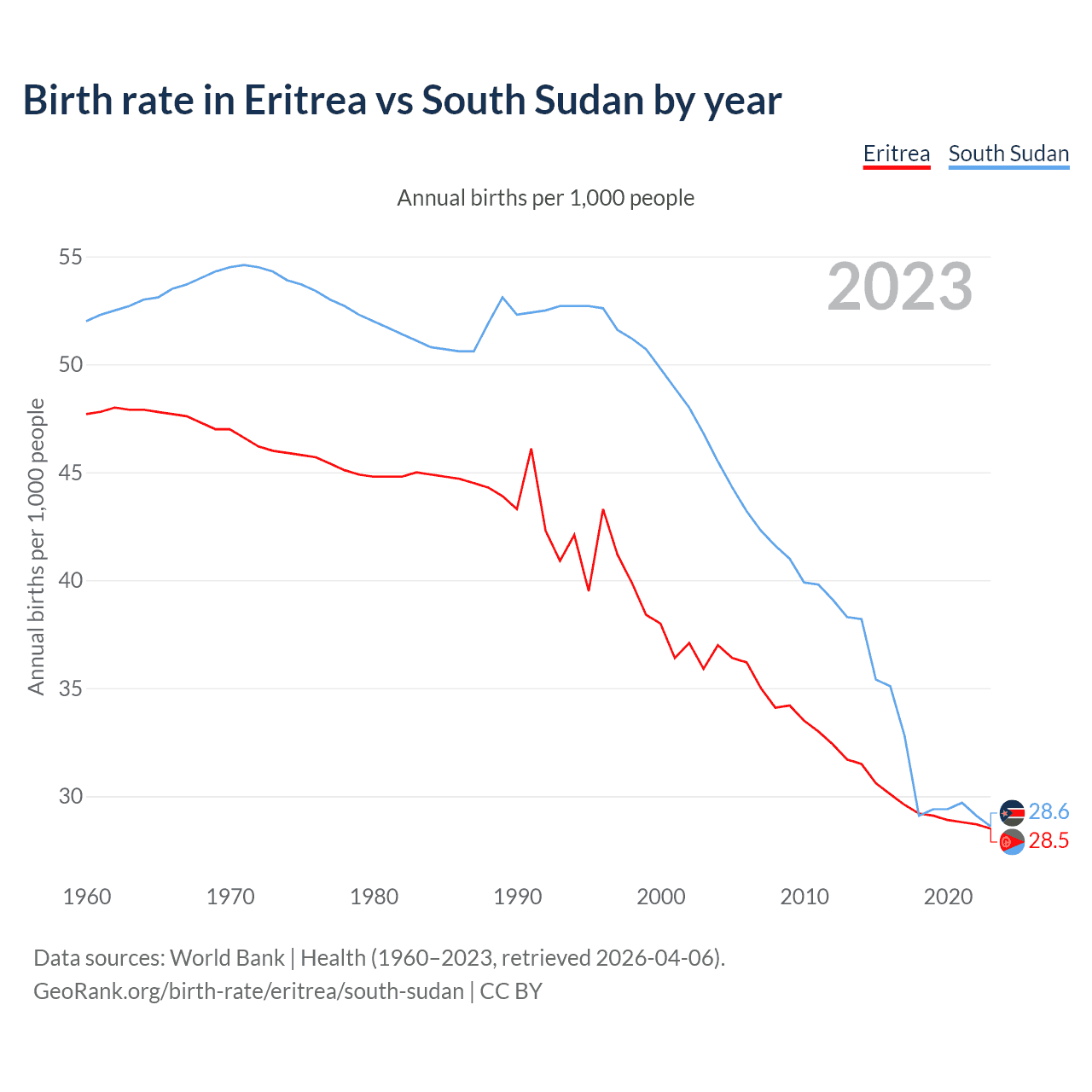 GeoRank.org/birth-rate/eritrea/south-sudan | CC BY