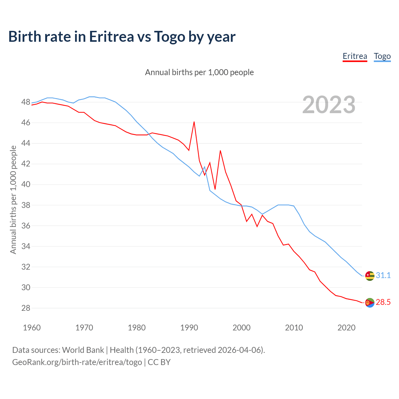 GeoRank.org/birth-rate/eritrea/togo | CC BY