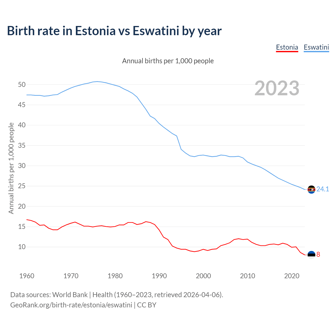 GeoRank.org/birth-rate/estonia/eswatini | CC BY