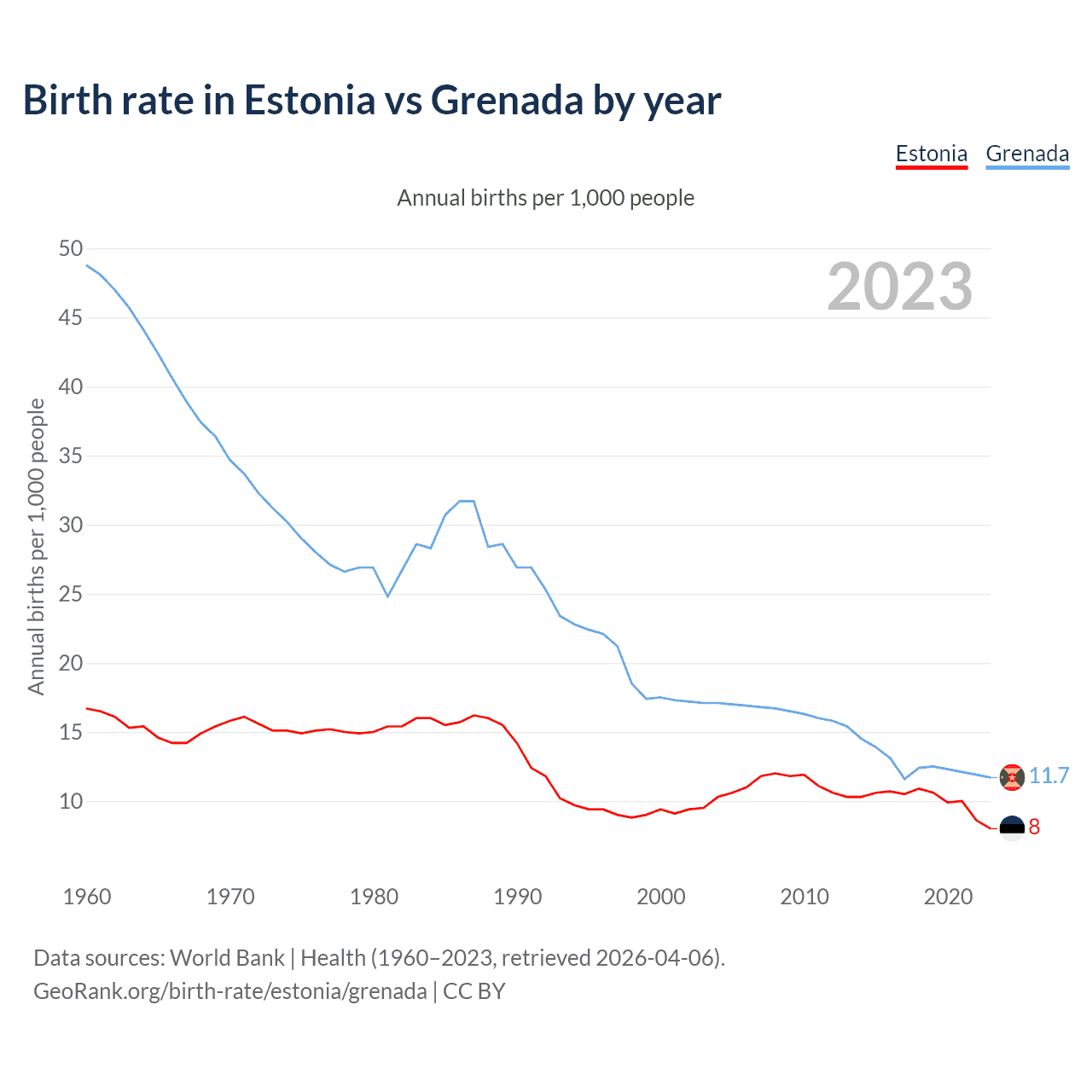 GeoRank.org/birth-rate/estonia/grenada | CC BY
