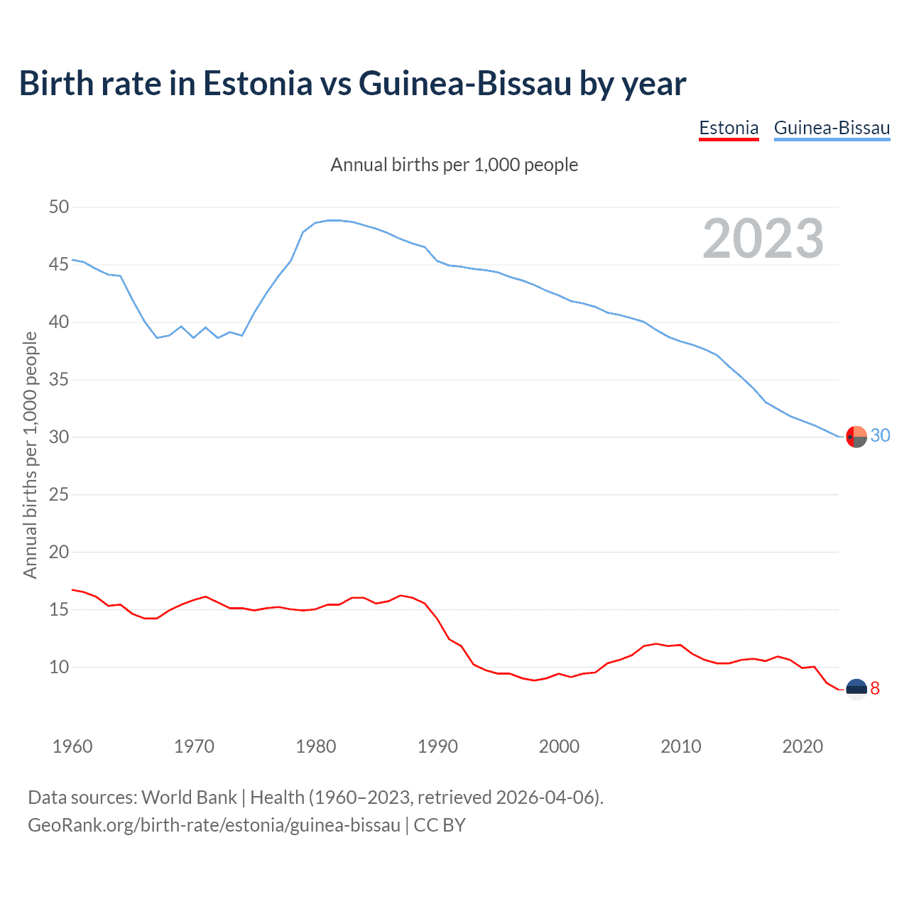 GeoRank.org/birth-rate/estonia/guinea-bissau | CC BY