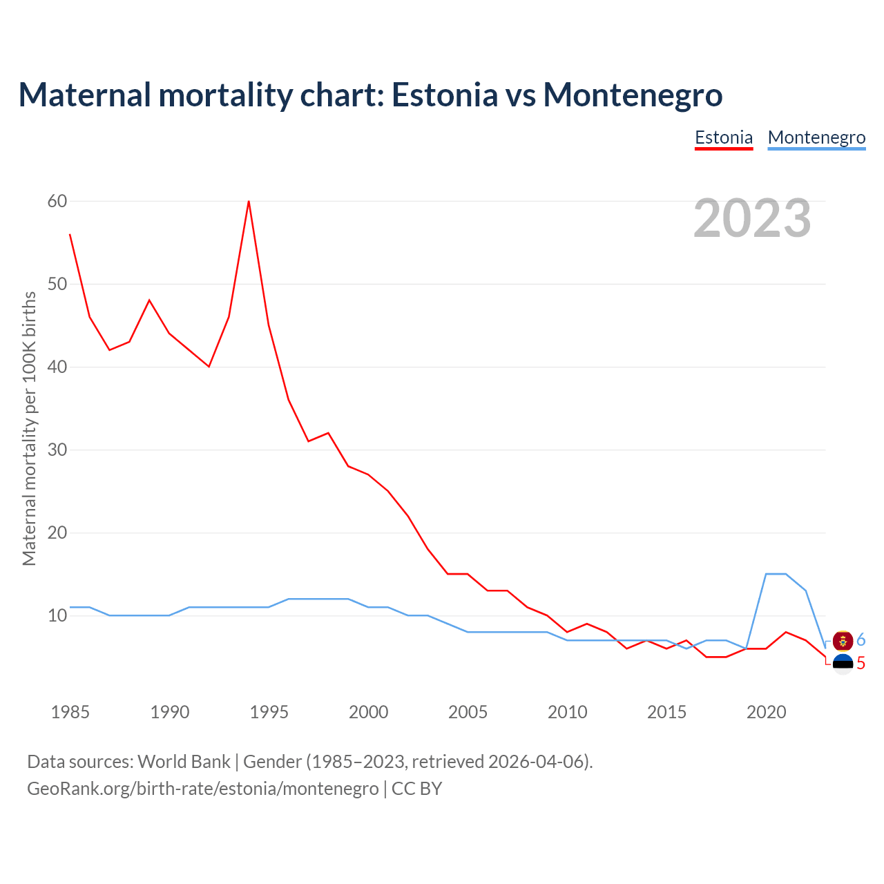 Maternal mortality chart: Estonia vs Montenegro